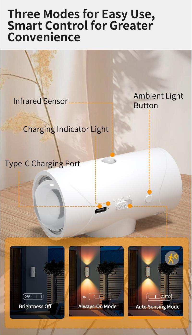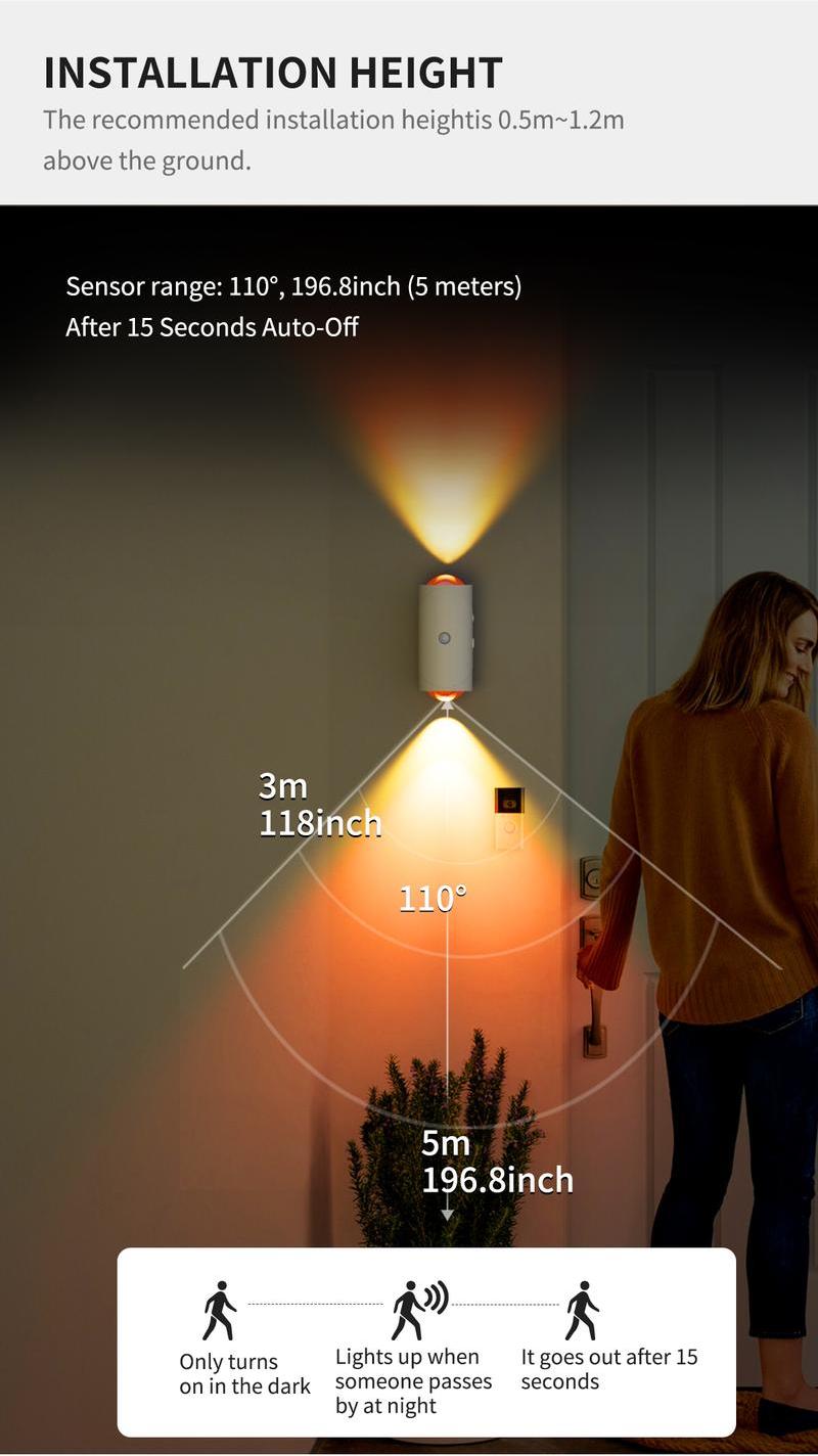 • Intelligent Sensing: Equipped with advanced infrared wireless sensors, it has a precise sensing range and can quickly light up when people approach, eliminating the need for manual switching and providing you with a convenient lighting experience. Whether you're hurriedly looking for keys when returning home at night or getting up in the middle of the night, it can sense and light up immediately, being both considerate and practical.