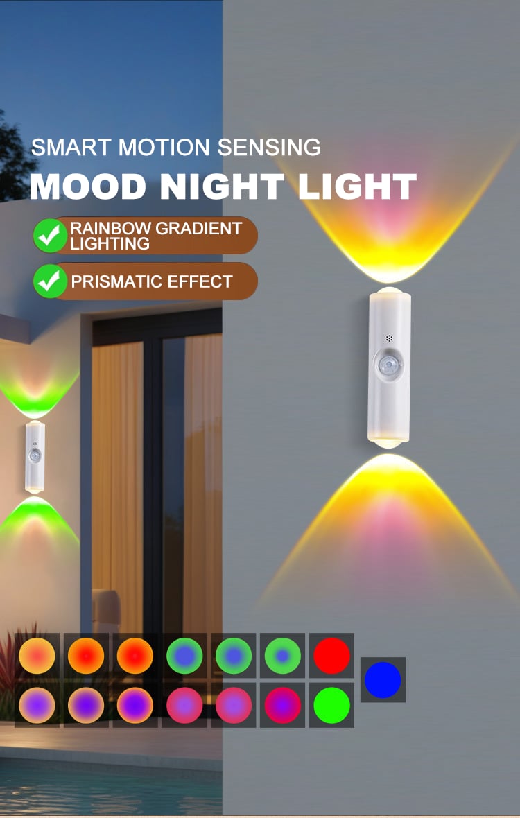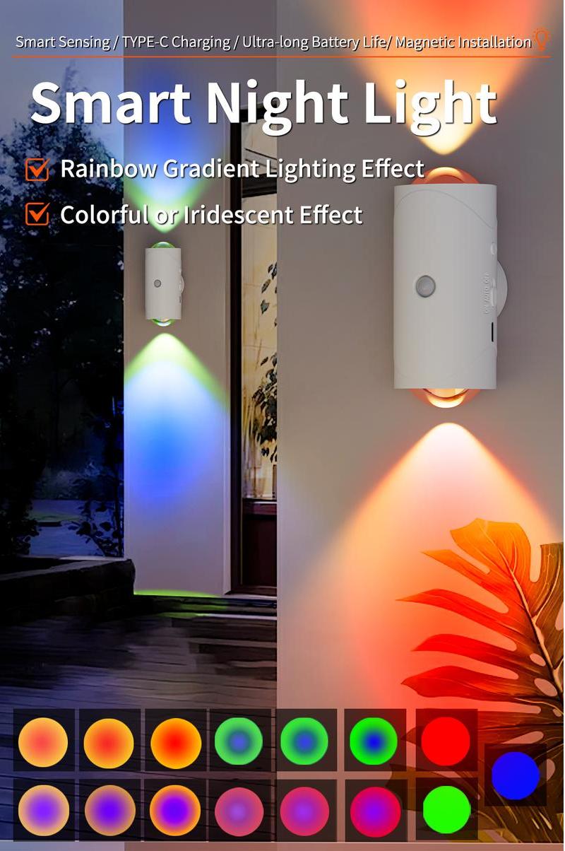 Smart LED Night Light with Motion Sensor, RGB Gradient Dimmable, USB Rechargeable, Magnetic, for Multiple Indoor Scenes