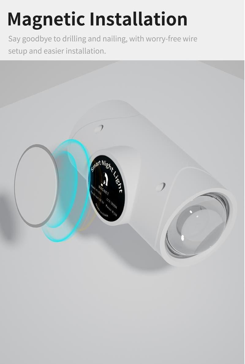 • Installation: Adsorb the night light onto a metal surface or use the matching magnetic patch to stick it onto other material surfaces to easily complete the installation.
